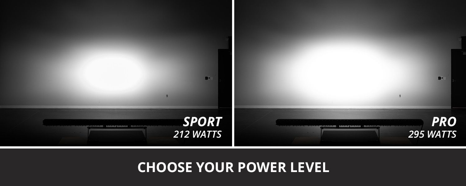 Choose Your Power Level. The SS50 LED Light Bar is available in two different power levels. Both options use high-intensity, automotive-grade LED emitters and TIR optics for unmatched focus and output. The Sport model offers the best bang for your buck, while the Pro model takes things a step further with a noticeable boost in power.